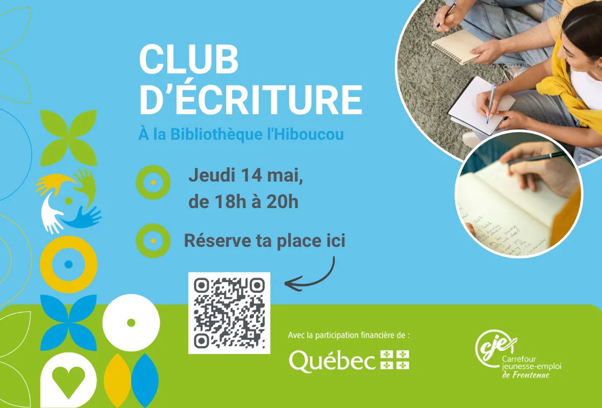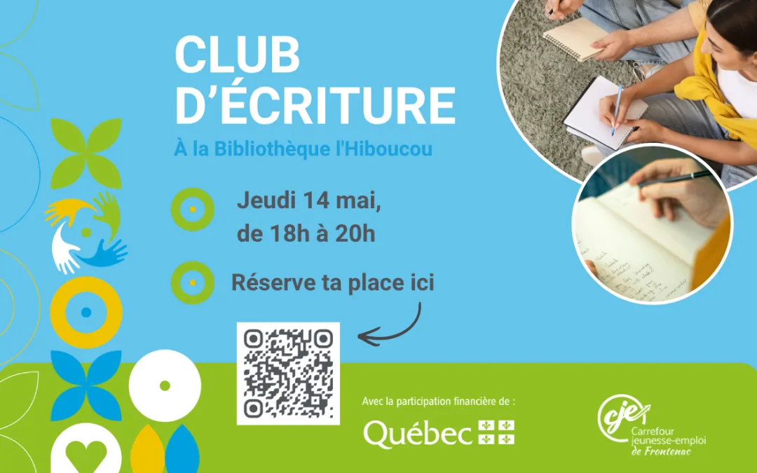 Ouvert à tous. Nous sommes à la recherche de participants pour un club d’écriture qui se réunit une fois par mois. La prochaine rencontre du club se déroulera le 14 mai.